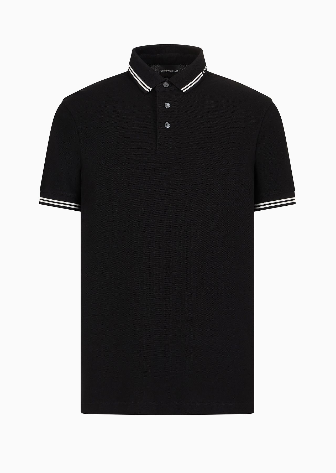 Classic, regular-fit polo shirt made from pure cotton jersey, made unique by the Emporio Armani logo with jacquard stripe details in two different variations: either on the side of the collar or on the button profile, depending on the style. Product Code: 6D1F951JCYZ10029 Details Composition 100% Cotton Regular fit Jersey Polo-shirt collar Partial closure with buttons Placed logo Fitting Regular fit The model is 188 cm tall and is wearing size 48/M (Italian Size)
