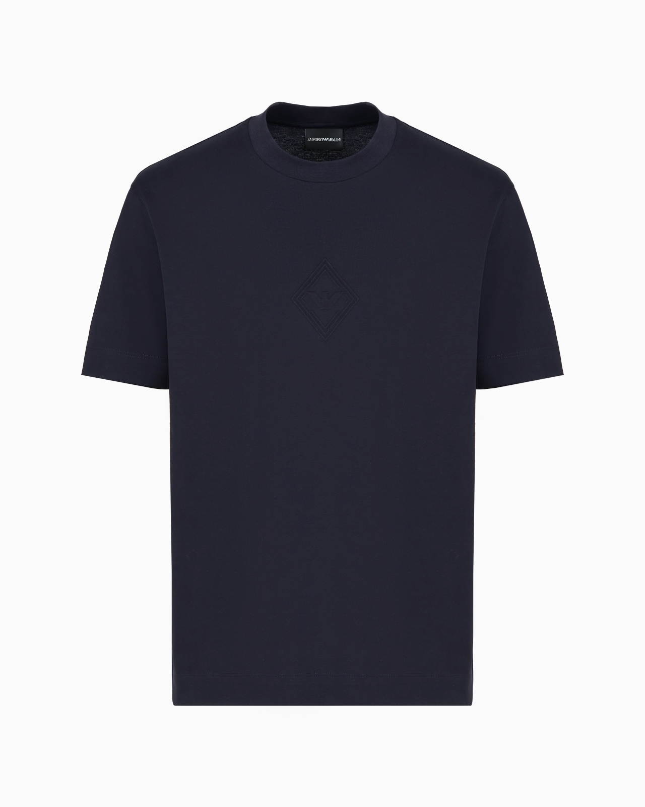 Regular-fit crew-neck T-shirt made of pure cotton jersey with decorative eagle logo on the front, created using an embossed technique that gives it a domed effect. The Emporio Armani logo is a constant of undeniable style, whether it’s shown off, displayed or just hinted at. Regular fit Jersey Crew neck Short sleeves Embossed logo Product Code: EM001040AF13669UB118