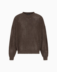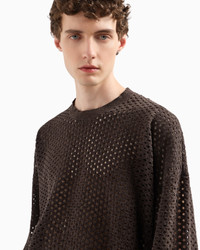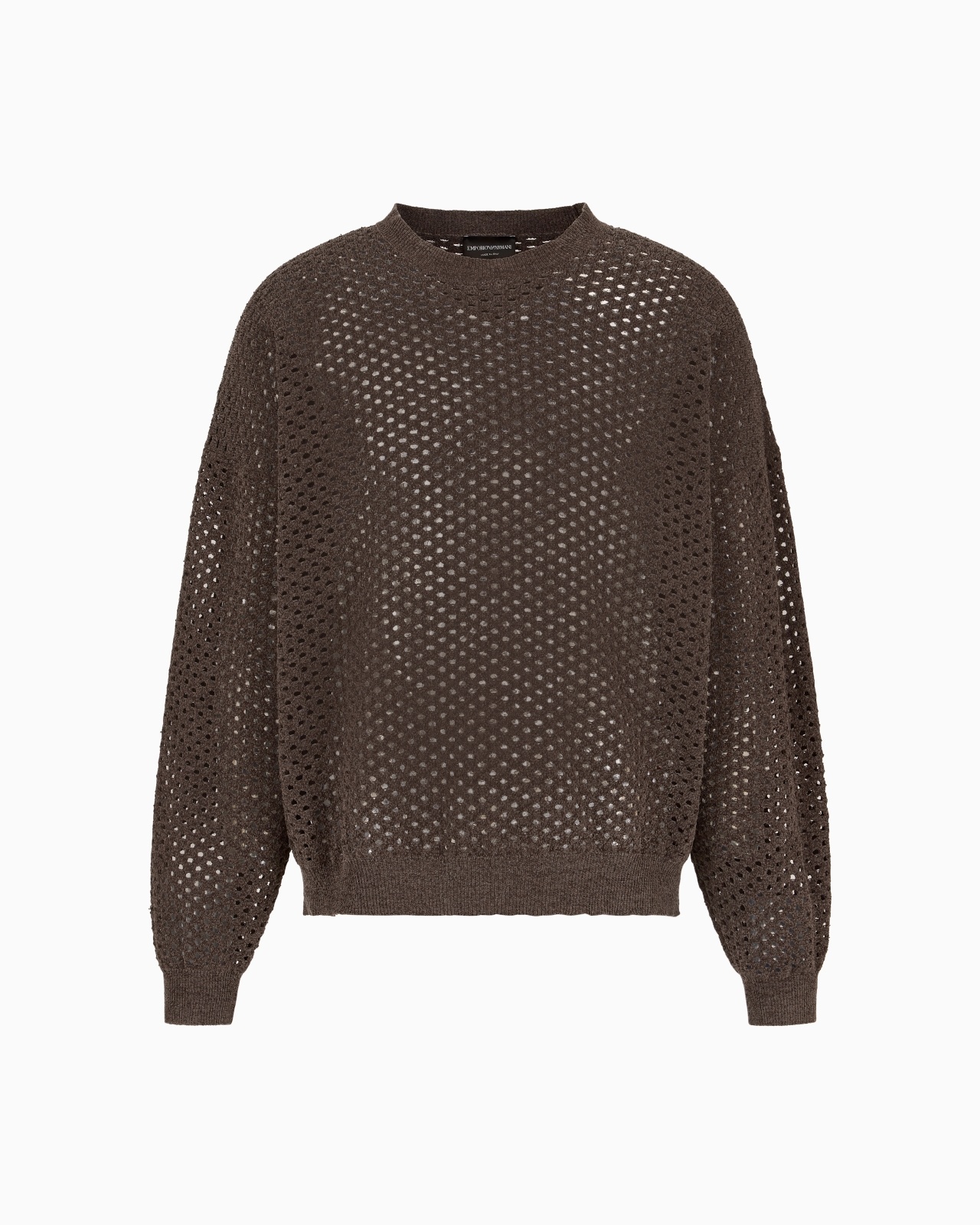 Crew-neck jumper made of cosy chenille with a punch-stitch that creates a weave with large all-over perforations. Extremely light and fluid textures that define loose, relaxed silhouettes for comfortable pieces that are pleasant to wear. Fineness: 12 Punch-stitch knit Openwork knit Crew neck Long sleeves Ribbed trim Product Code: EM000922AF14670U6200