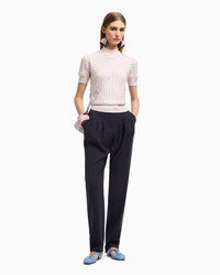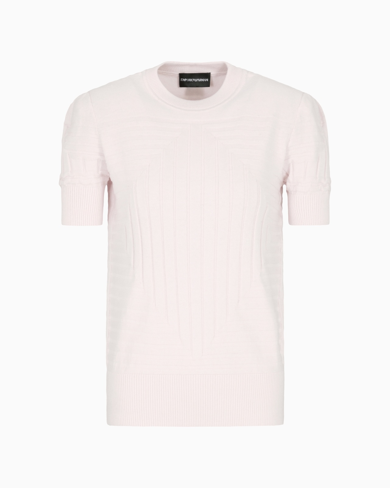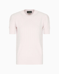 Crew-neck jumper with an alternating ribbed and plain-and-purl knit. A garment that evokes the desire for an easy and comfortable wardrobe, for wearing every day. Knit Combination of ribbed and plain knits Crew neck Short sleeves Ribbed trim Product Code: EW001444AF15011UA205