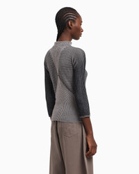 Mock-neck jumper with three-quarter sleeves, in a fabric with a soft feel due to a small percentage of cashmere content. The style features a dense weave of links stitches alternating with a vertical striped jacquard motif, creating a two-tone effect. Link stitch Jacquard Striped design Mock neck Three-quarter sleeves Made in Italy Product Code: EW002743AF20460FC102