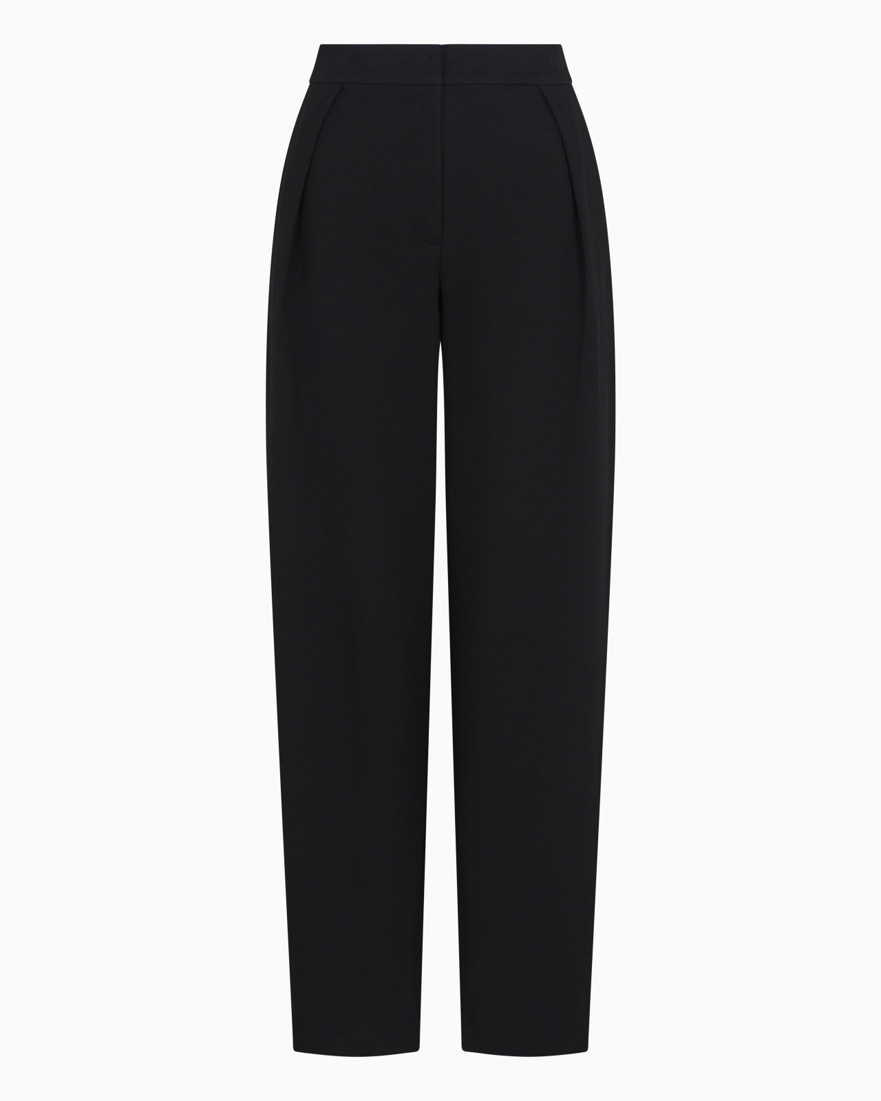 Trousers with darts and a deep front pleat. The piece is made of cotton-blend jersey with a dense, all-over jacquard motif, creating a unique, three-dimensional look that is similar to the texture of a knit, elevating the style’s exclusive allure. Stretch jersey Jacquard Knit-effect weave Fastening with zip, press stud and back button Darts and front pleat Side pockets Product Code: EW000681AF12421UC001