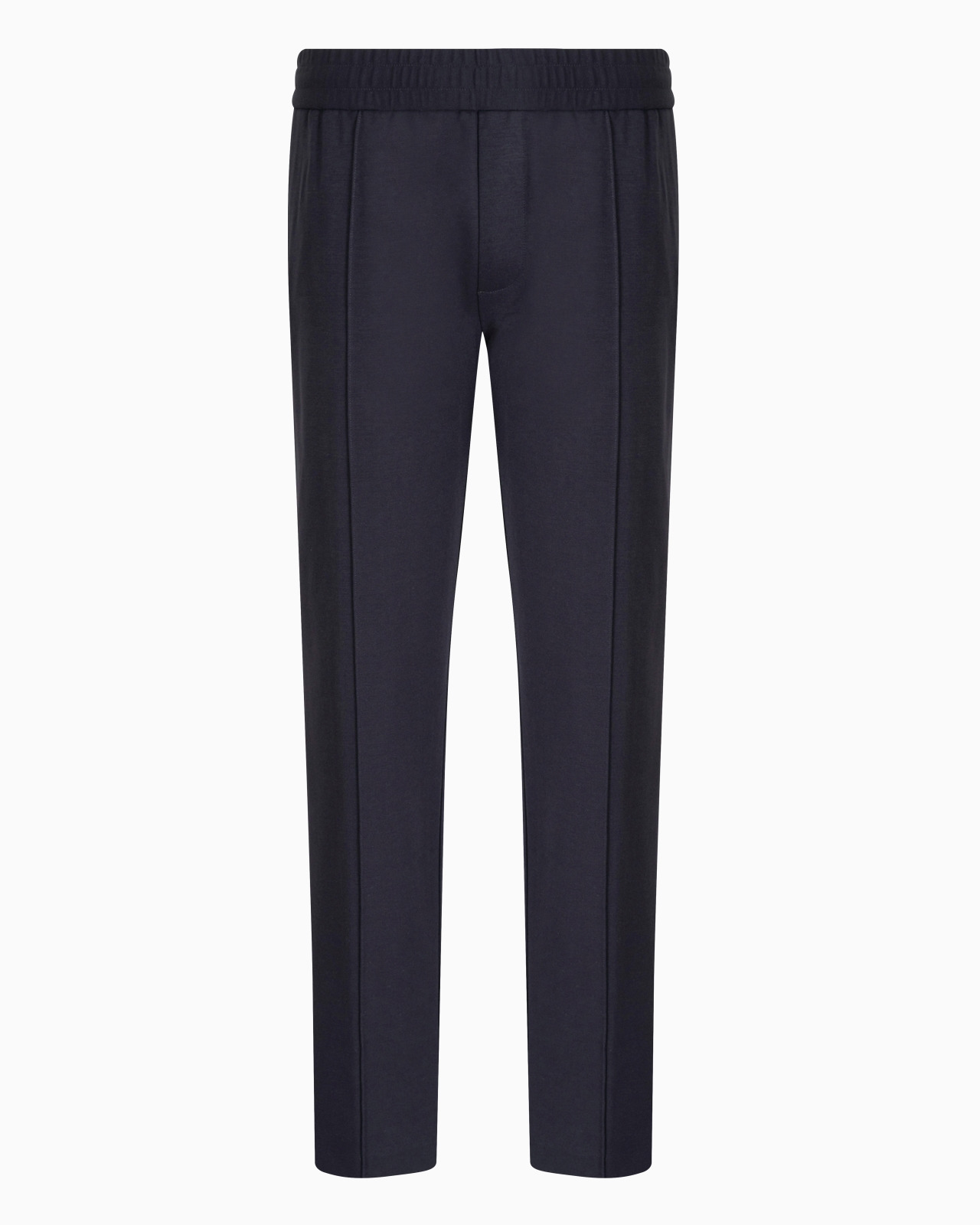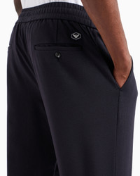 Men's joggers made from knitted jersey. Elasticated internal drawstring waist and front ribbing. This item belongs to the Essentials clothing selection, the Emporio Armani capsule collection that is an evergreen statement of style: an ongoing collection with clean, well-designed shapes for a wardrobe that meets the demands of any season. These “essential”, versatile pieces are a must-have for the male wardrobe. Product Code: 8N1PL61JEZZ10920 Details Composition 63% Viscose 32% Polyamide 5% Elastane Knitted jersey Elasticated waist Inner drawstring Front ribs Side pockets Buttoned back welt pockets Back eagle logo patch Fitting The model is 188 cm tall and is wearing size 48/M (Italian Size)