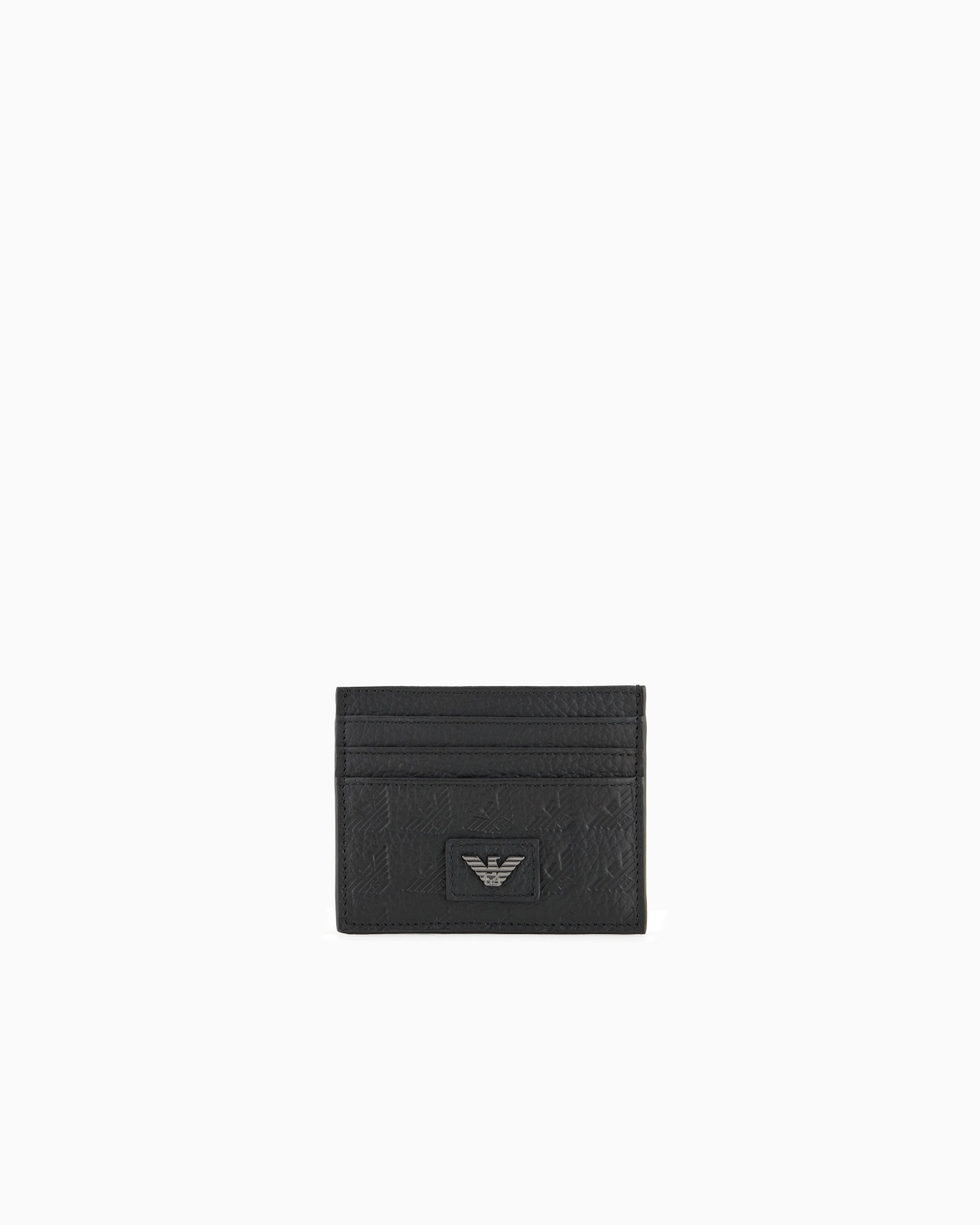 LEATHER CARD HOLDER WITH ALL-OVER EMBOSSED EAGLE
