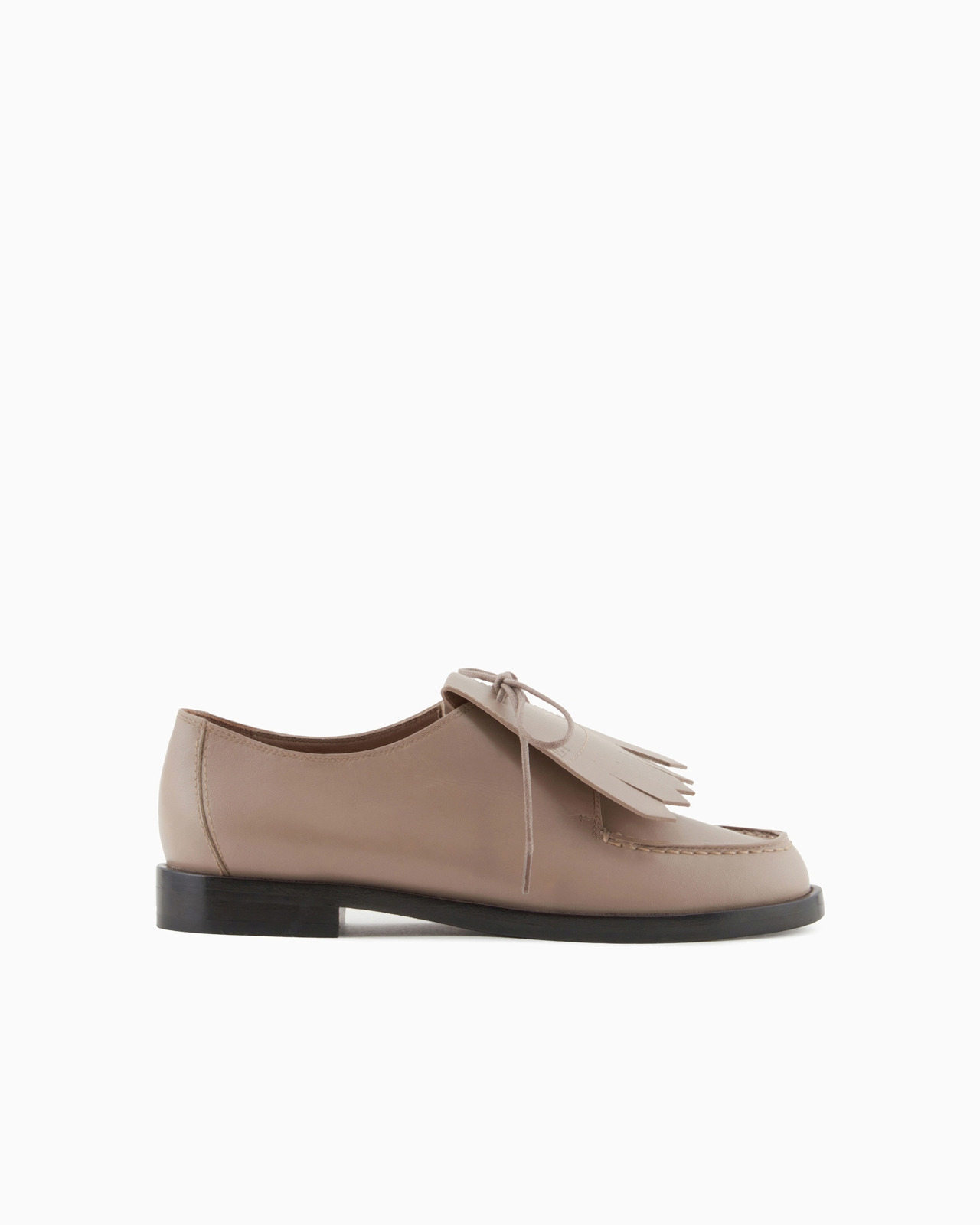 Calfskin lace-ups with applied fringe detail. This footwear belongs to the Icon capsule collection: the essence of Emporio Armani, providing a modern interpretation of the brand’s DNA by updating the iconic shapes and volumes of its past, aimed at affirming a classic, evergreen allure. Leather Lace-up fastening Applied fringe Leather sole Made in Italy Product Code: EW000424AF11991U8048
