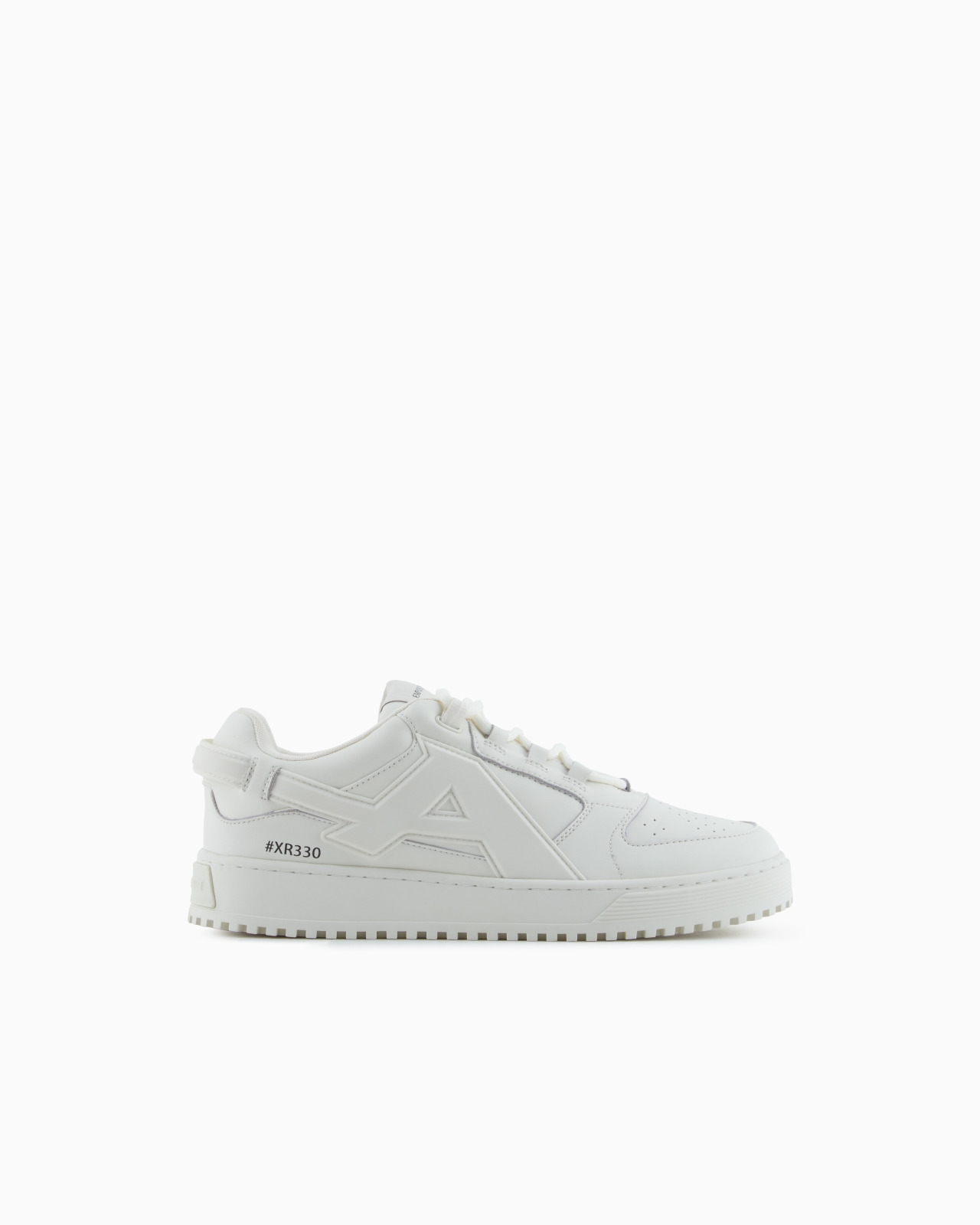 Leather sneakers with oversized EA side patch; equipped with a notched tread and double fastening with laces and a Velcro strap. Emporio Armani interprets the skating world of the late 1990s, offering uppers with padding on the collar and ankle, without ever losing sight of the brand’s signature clean, minimalist lines. Leather upper Rounded toe Lace-up fastening Oversized logo patch Notched rubber sole Product Code: EM003670AF19554U0011