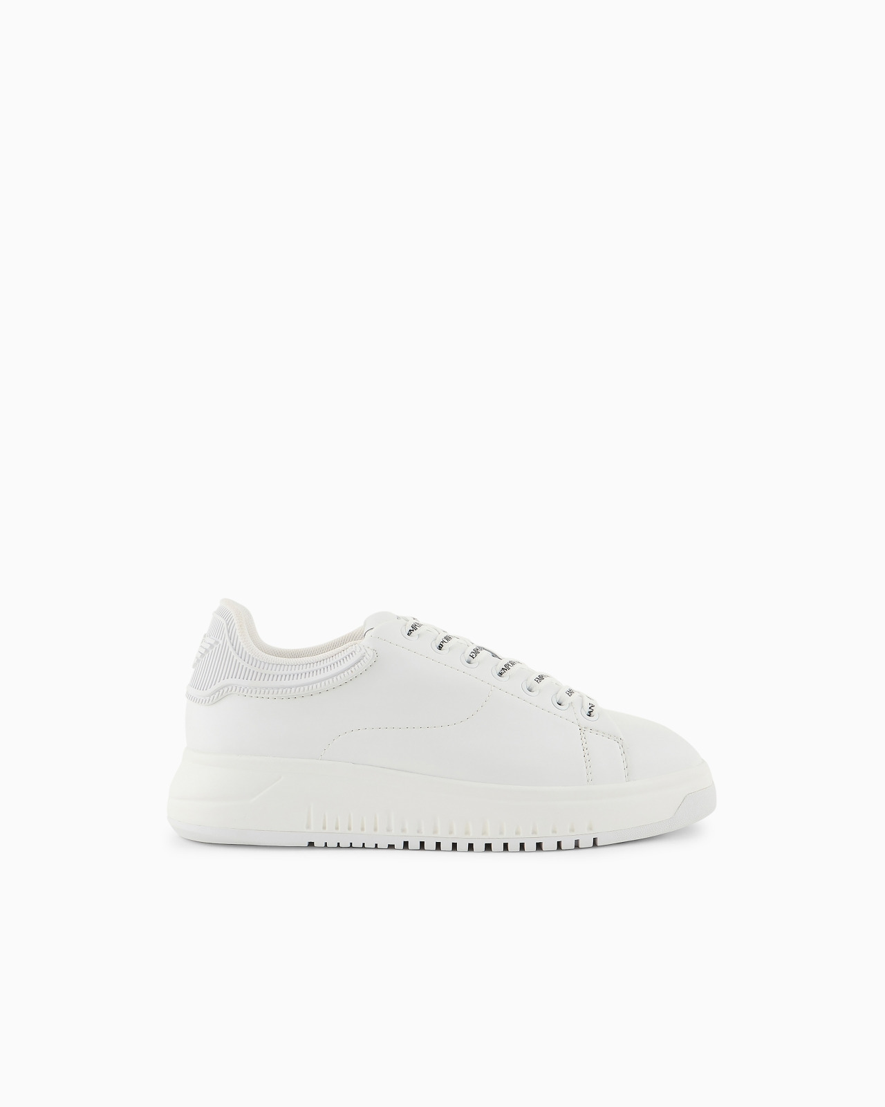 A unique style with significant volumes. Their fresh, modern allure makes these sneakers perfect on a wide array of occasions. The asymmetric logo soles feature ultra-lightweight, shock-absorbing EVA midsoles. Rubber back with eagle logo. Product Code: X3X024XN8251A222 Details Composition 100% Bovine leather Brand logo Solid color Laces Flat Round toeline Leather backing Rubber sole Contains non-textile parts of animal origin