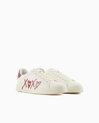 Cowhide sneakers featuring a logo back and collection print on the side. A tribute to the day of love and lovers: the contrasting red graphic designs embellish ready-to-wear clothing and accessories from the Valentine’s Day capsule collection, the Emporio Armani collection that celebrates love. Product Code: EM000220AF108321M0020 Details Composition 100% Bovine leather Leather upper Collection print Lace-up fastening Rounded toe Logo back tab Rubber soles