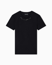 Crew-neck T-shirt in cosy, lightweight stretch jersey. The style is embellished with the Emporio Armani logo detail, presented here in metal, in a necklace effect incorporated into the T-shirt via slots and a chain. Lightweight jersey Crew neck Necklace-effect metal logo Short sleeves Product Code: EW002834AF12571UC001
