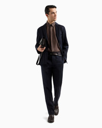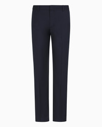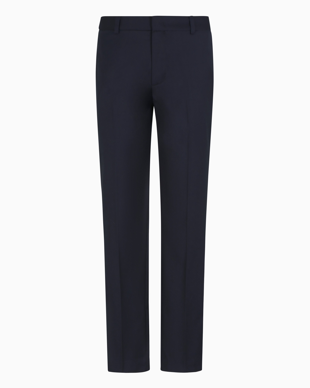 Formal design chinos. Made in a virgin-wool blend twill, these trousers feel fluid, are ultra lightweight and have an urban appeal, bringing metropolitan style to any look. Lightweight twill Chinos Waist with belt loops Closure with zip, hook and back button Side pockets Buttoned back double welt pockets EA logo plate Product Code: EM001505AF13726UB118