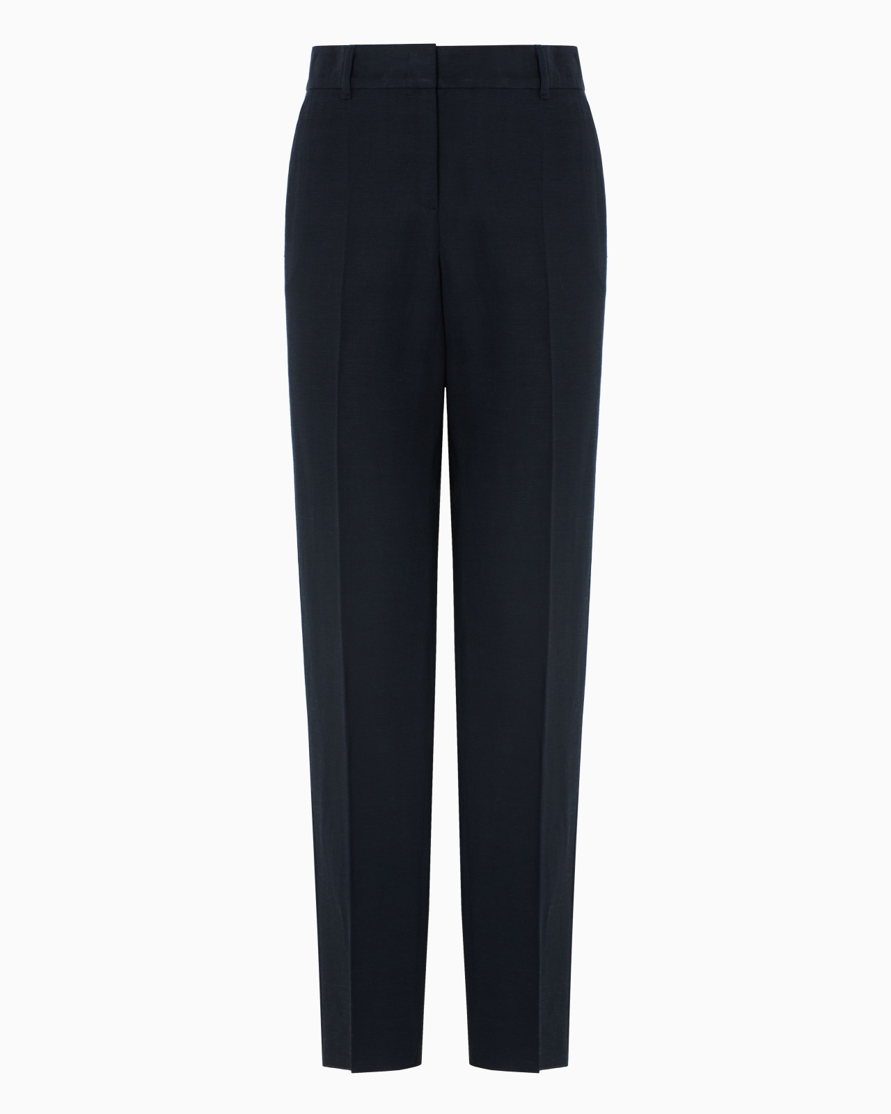 Linen, viscose and cotton blend trousers with pleats and a tapered leg. A modern, minimalist and extremely versatile style that can adapt to many occasions. Ankle cuffs: 17 cm Concealed zip-and-hook closure Side pockets Back welt pockets Unlined garment Product Code: EW001591TE14038UC001