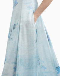Long dress in a viscose blend with thin shoulder straps and a flared design that adds width to the skirt. The trilobal fabric used has a particular construction that creates a weave with a spectacular liquid, luminous effect, dramatically intensifying the light reflected. An all-over floral motif elevates the uniqueness of the piece and completes it in style. Length: 145 cm Trilobal fabric Rounded neckline Thin shoulder straps Side pockets Back concealed zip Product Code: EW001535TE13523P1007