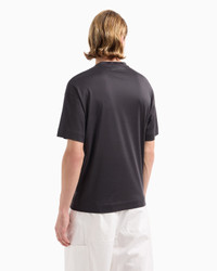 Loose-fit crew-neck T-shirt made from jersey in a cotton and Lyocell blend, a semi-synthetic fibre that has an exceptionally low impact on the environment, it is derived from eucalyptus leaves and is valued for being moisture-wicking, durable, breathable and wrinkle-proof. Product Code: 6R1TB31JUVZ10842 Details Composition 70% Lyocell 30% Cotton Loose fit Crew neck Short sleeves Matching logo on the neckline at the back Fitting Loose fit The model is 188 cm tall and is wearing size 48/M (Italian Size)