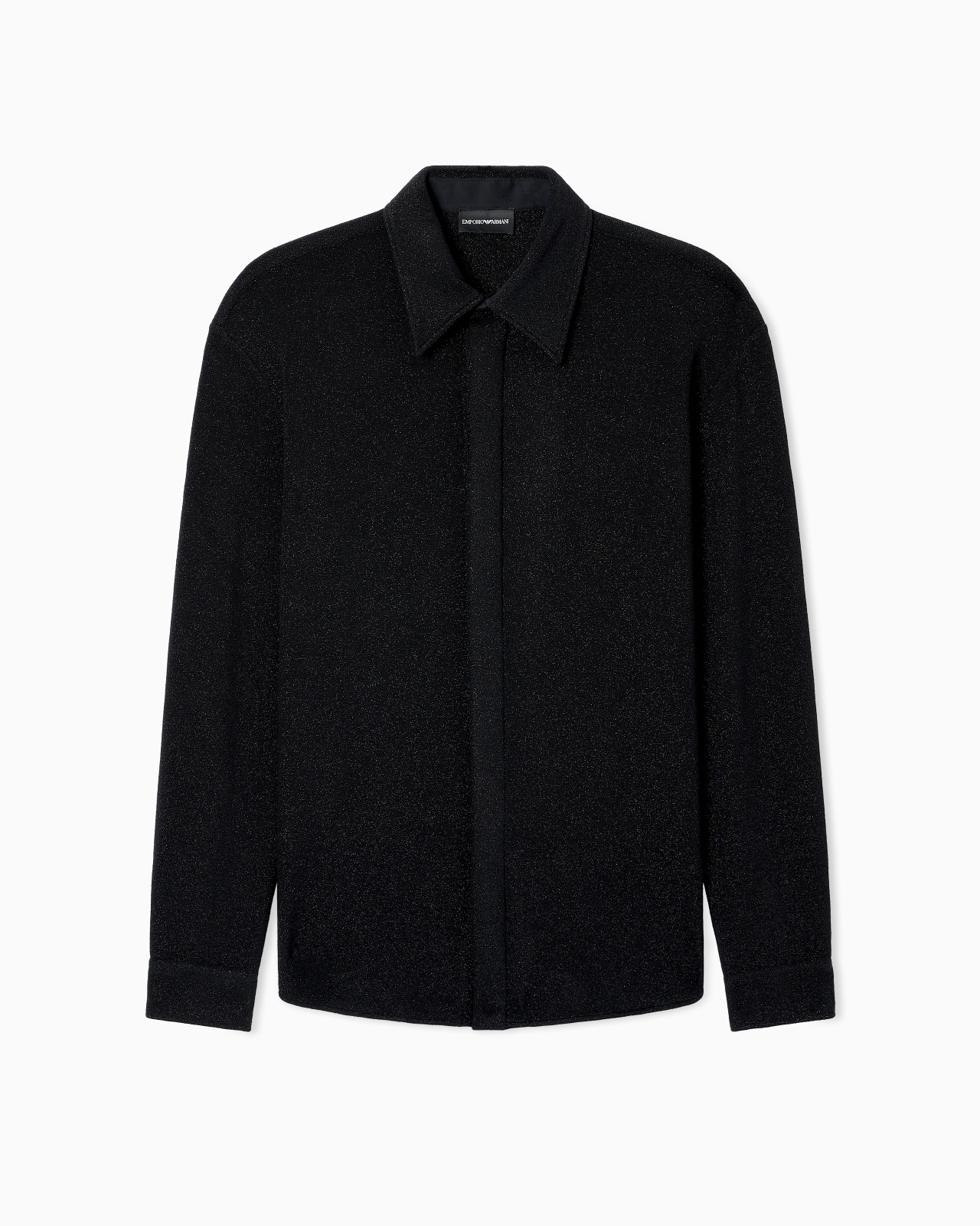 Shirt with a classic collar and concealed front button placket. The style is made of lurex jersey that adds a bright touch to the piece. Lurex jersey Classic collar Concealed front button closure Long sleeves Button cuffs Product Code: EM003991AF20984FC067