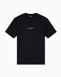 Cotton and Lyocell blend jersey crew-neck T-shirt. The Emporio Armani Milano logo accompanied by the iconic eagle is offered with an original three-dimensional effect: the matching dark part is created using an embossed technique that gives the subject an embossed domed look, while the contrasting white print creates a chiaroscuro shaded effect that enhances the 3D look. Regular fit Jersey Crew neck Short sleeves Domed logo Product Code: EM002838AF10761UC001