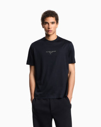 Cotton and Lyocell blend jersey crew-neck T-shirt. The Emporio Armani Milano logo accompanied by the iconic eagle is offered with an original three-dimensional effect: the matching dark part is created using an embossed technique that gives the subject an embossed domed look, while the contrasting white print creates a chiaroscuro shaded effect that enhances the 3D look. Regular fit Jersey Crew neck Short sleeves Domed logo Product Code: EM002838AF10761UB118