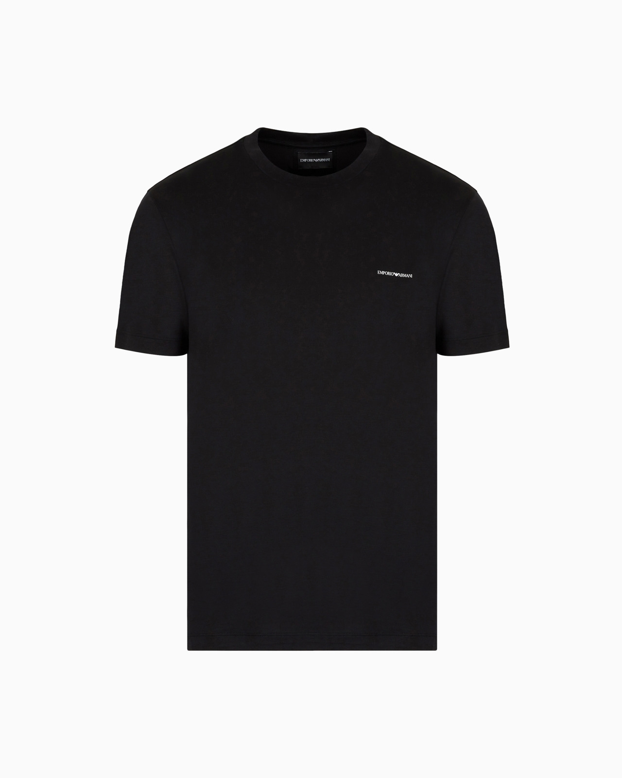 Crew-neck T-shirt with logo lettering print on the chest, made from jersey in a blend of cotton and Lyocell – a semi-synthetic fibre that has an exceptionally low impact on the environment. It is derived from eucalyptus trees and is renowned for being very durable, breathable, absorbent and wrinkle-proof. This item belongs to the Essentials clothing selection, the Emporio Armani capsule collection that is an evergreen statement of style: an ongoing collection with clean, well-designed shapes for a wardrobe that meets the demands of any season. These “essential”, versatile pieces are a must-have for the male wardrobe. Product Code: 8N1TD81JUVZ10999 Details Composition 70% Lyocell 30% Cotton Jersey Crew neck Short sleeves Micro logo lettering print Fitting The model is 188 cm tall and is wearing size 48/M (Italian Size)