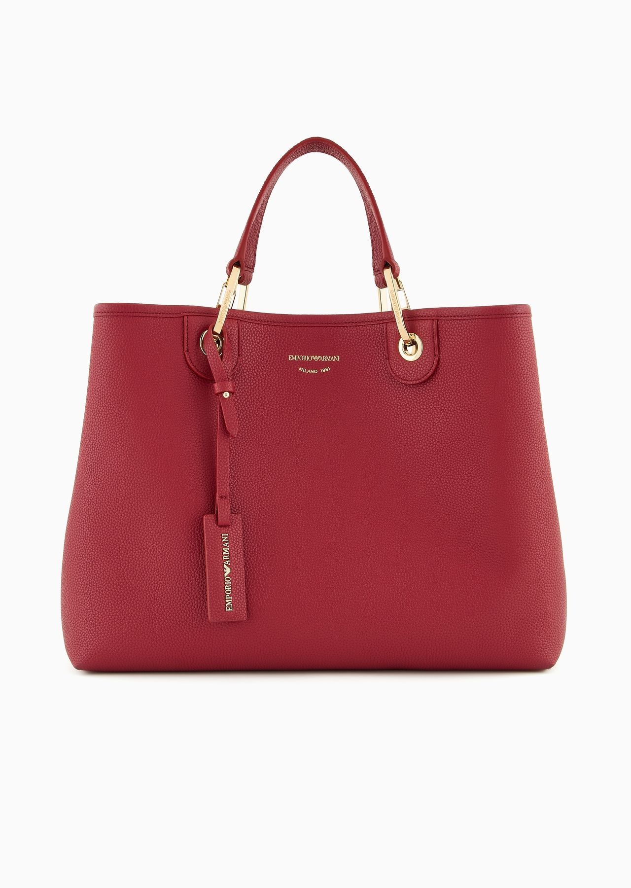 Deer-print medium shopper bag with magnetic clasp and silk-screen logo. The item is embellished with removable gold-tone carabiner clips and tags with embossed logo lettering that match the bag. Featuring a matching inner zip pouch and detachable logo shoulder strap. This item belongs to the MyEA line, the selection of iconic and exclusive Emporio Armani bags that are most representative of the label. Choose the piece and complete it with accessories from the line that suits your style. Product Code: EW000360AF120361M5008 Details Composition 100% Thermoplastic resin Measurements: 37.5 x 27 x 11.5 cm Deer-print finish Solid coloured Silkscreen logo Two handles Logo clips Detachable logo shoulder strap Matching internal pouch with zip