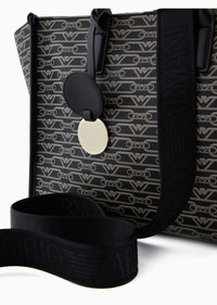 Shopper bag with double handle, practical adjustable shoulder strap in logo tape and logo charm. A series of accessories featuring a dense all-over monogram print available in functional styles designed for the Emporio Armani woman always on the go. Product Code: EW000370AF119511FC033 Details Composition 100% Polyester Measurements: 51 x 17 x 27 cm All-over monogram Two handles Logo charm Adjustable, detachable shoulder strap Zip closure