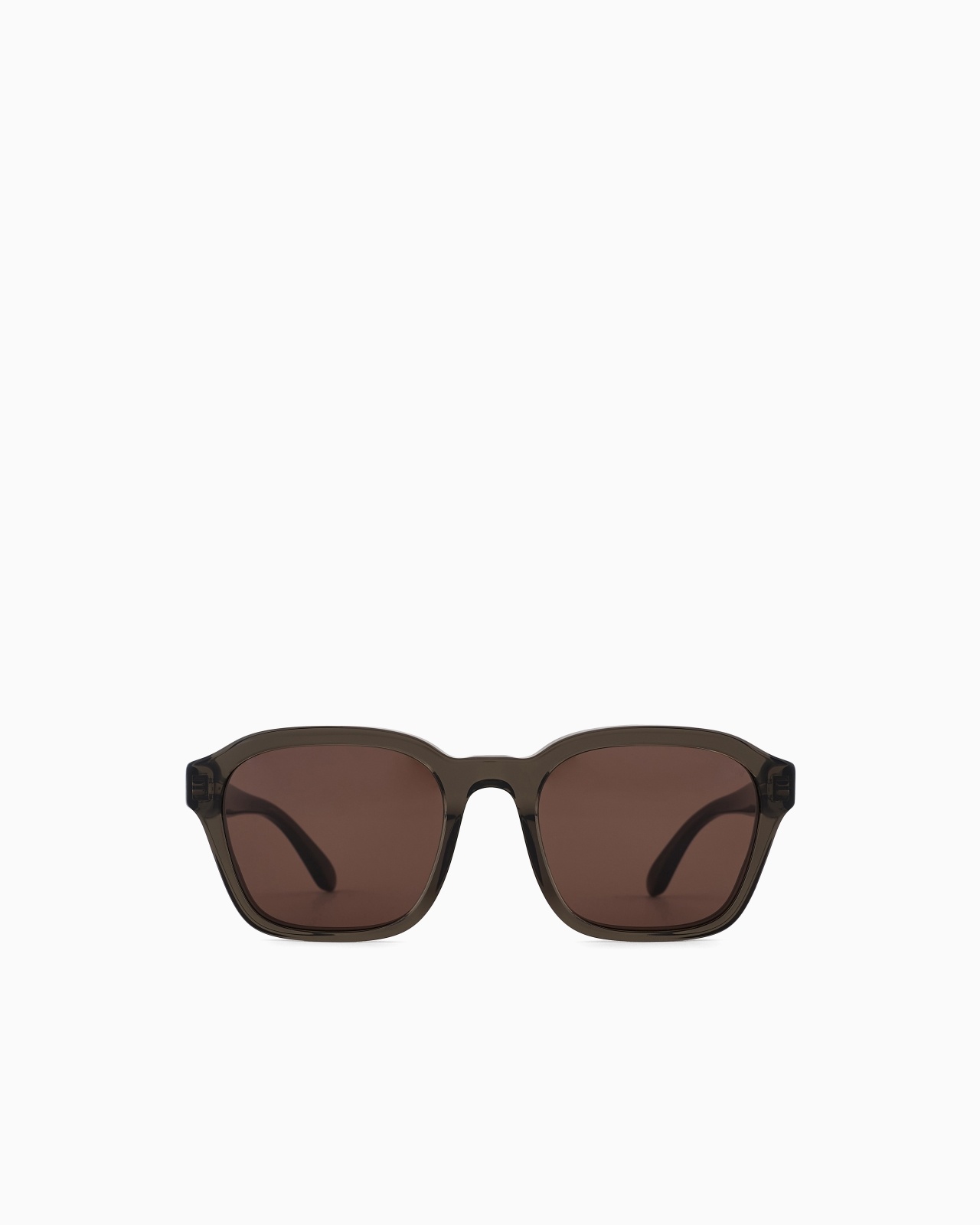 Irregular-shaped men’s sunglasses made from bio-acetate. A feature of this style is its transparency which reveals the metal core of the temples. Universal fit: the unique construction allows for a universal fit suitable for different face shapes and sizes. Product Code: EA4245ULNLP624973L
