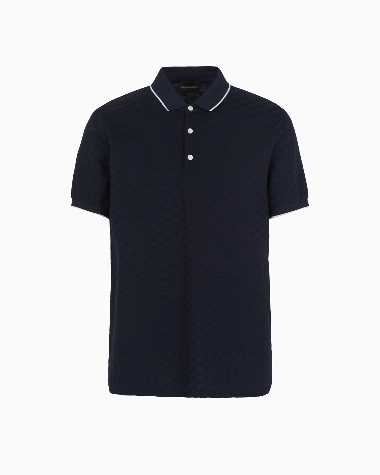 Mercerised jersey polo shirt with all-over jacquard eagle
