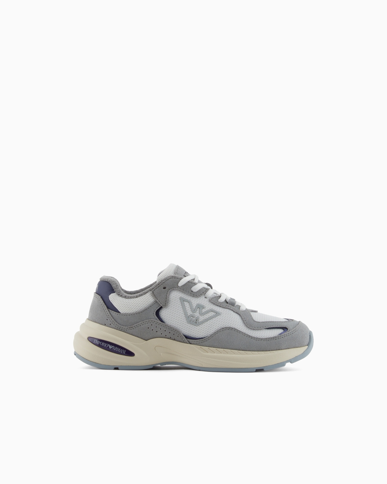 Mesh and suede sneakers with lace-up fastening and eagle on the side. A new style with a clever blend of materials designed for running that combines style and comfort. Multi-textured uppers Eagle plate Lace-up fastening Back logo Rubber soles Product Code: EW003094AF19879MZ355