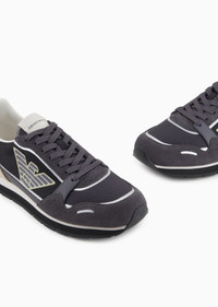 Mesh sneakers with suede details and eagle patch