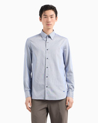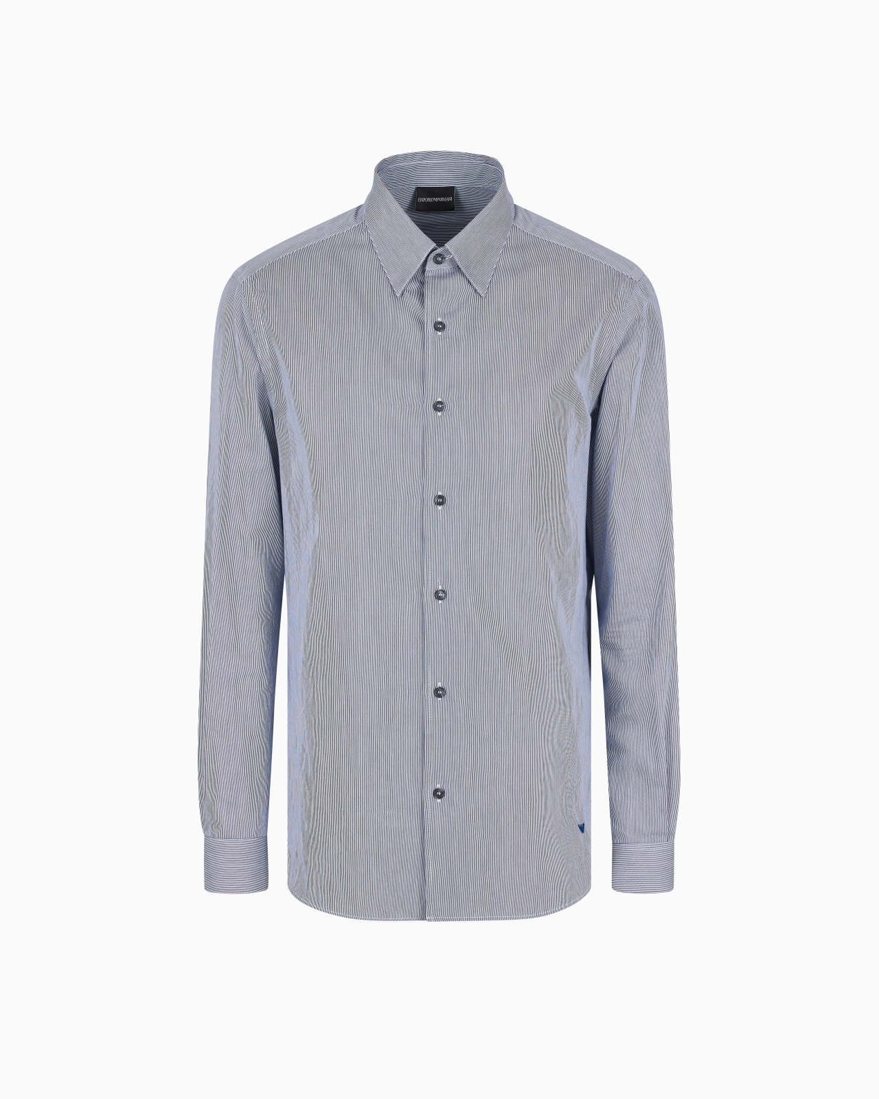 Pure cotton shirt with classic collar. The jacquard milleraies motif enhances the classic style. A must-have for any wardrobe, the shirt reflects the style and personality of every man. Jacquard Milleraies motif Classic collar Front buttoning Long sleeves Straight cuffs Back yoke Product Code: EM001401AF12532F0022