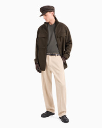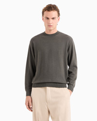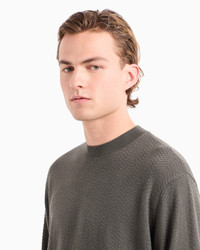 Mock-neck jumper in virgin wool with a micro-textured weave