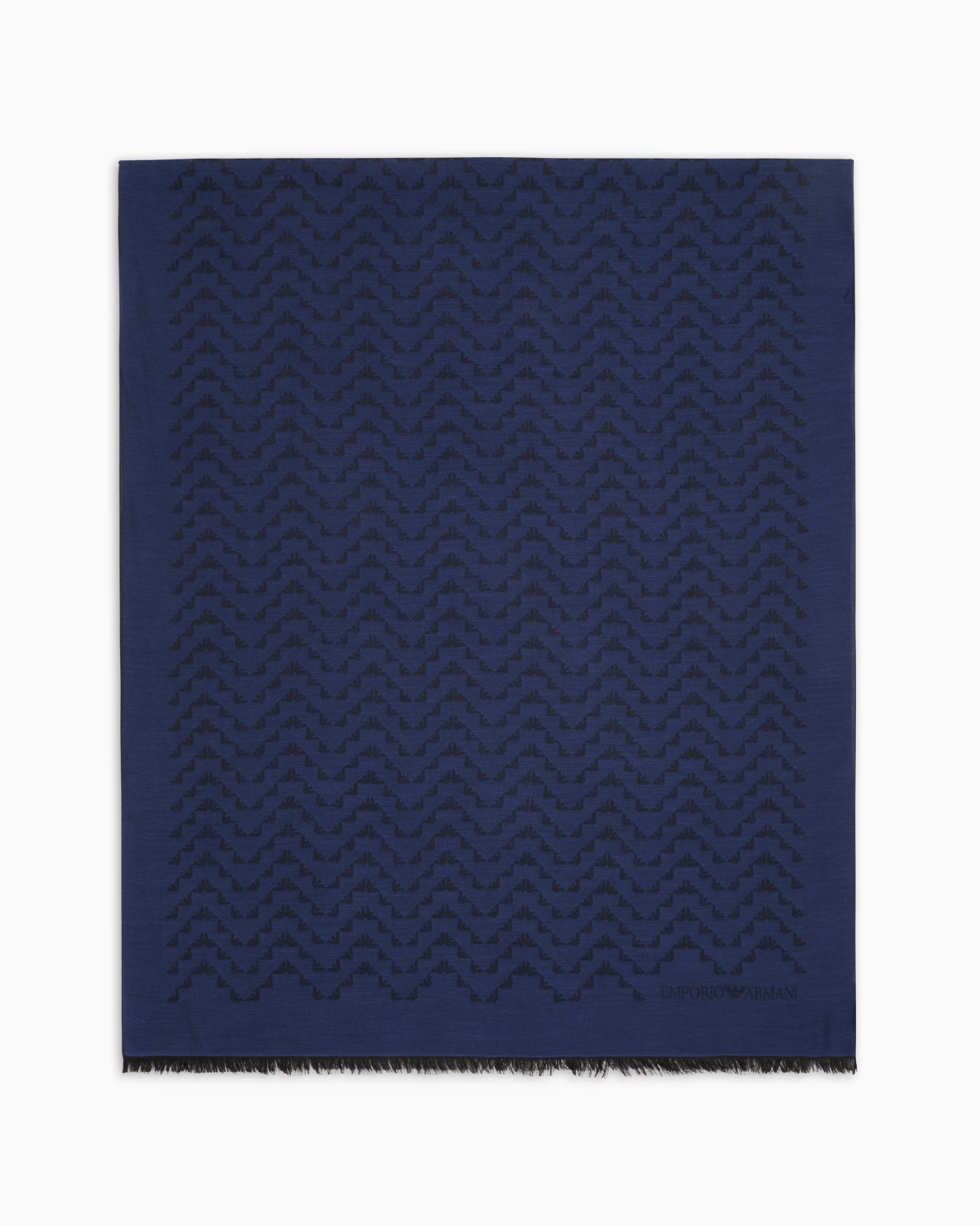 Stole made of a jacquard-weave modal blend, with all-over iconic eagles throughout and Emporio Armani logo on the left hem. Measurements: 190 x 80 cm Jacquard All-over eagle design Fringed trim Made in Italy Product Code: EM001424AF14173FB085
