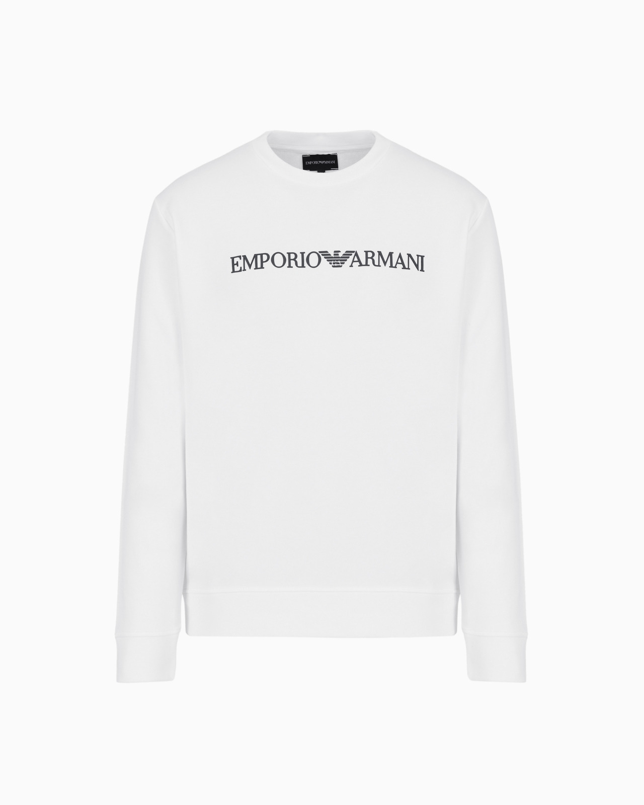 Cotton and modal blend jersey crew-neck sweatshirt. The standout logo print completes the style. This item belongs to the Essentials clothing selection, the Emporio Armani capsule collection that is an evergreen statement of style: an ongoing collection with clean, well-designed shapes for a wardrobe that meets the demands of any season. These “essential”, versatile pieces are a must-have for the male wardrobe. Product Code: 8N1MR61JRIZ1F109 Details Composition 67% Modal 33% Cotton Jersey Crew neck Long sleeves Logo print Fitting The model is 188 cm tall and is wearing size 48/M (Italian Size)