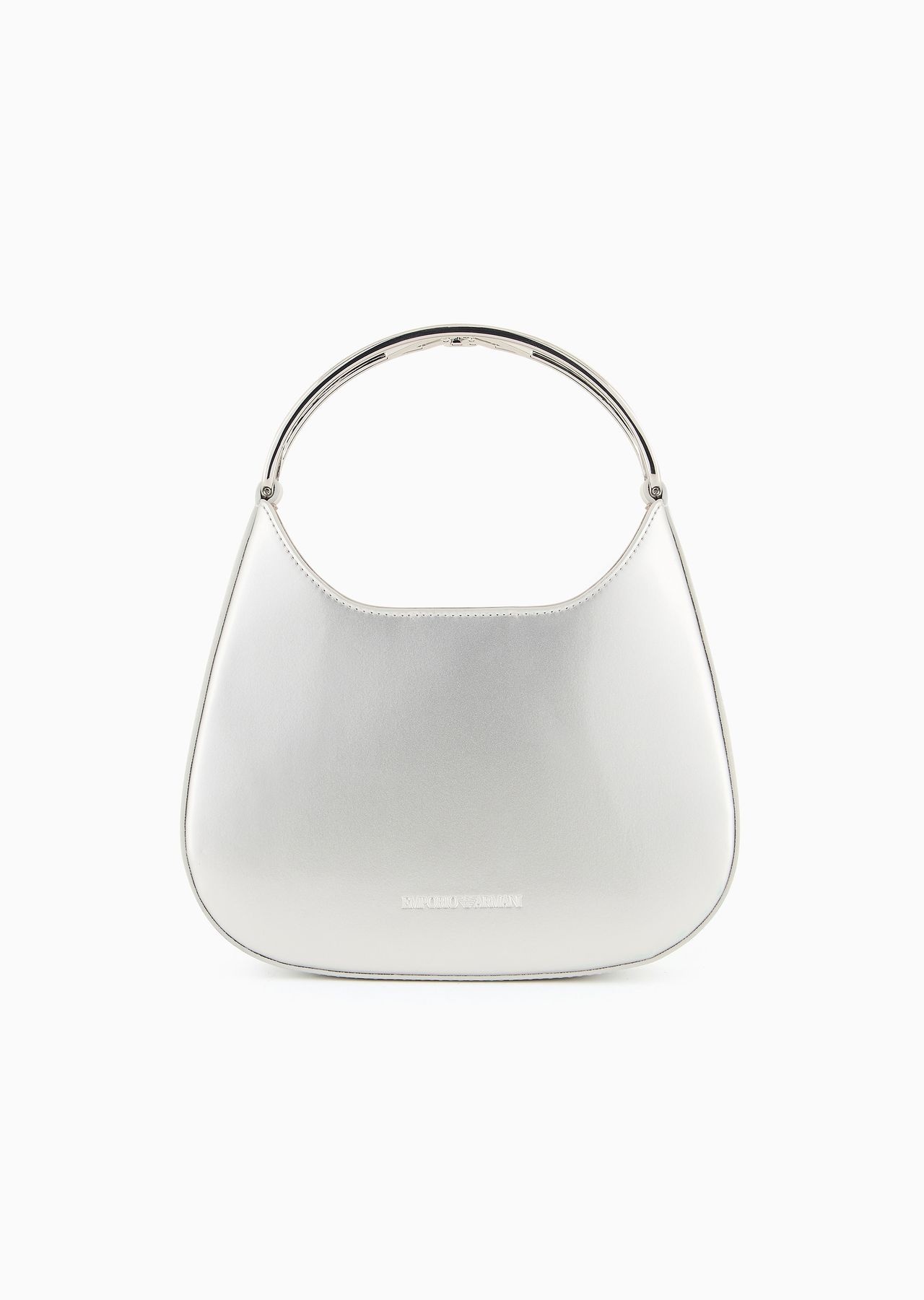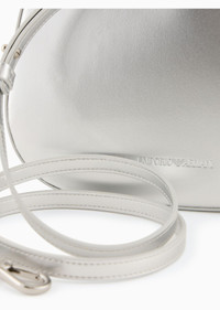 Mini hobo bag for carrying by hand with a patent-effect finish and metal handle. The bag belongs to this season’s new Moon capsule collection: an image defined by elongated silhouettes that move under the moonlight of a deep and mysterious night, a rarefied, dreamy atmosphere made up of starry skies in which milky sparkles light up even the darkest velvets. The accessories selection features metallic materials and a pearl finish. The jewel handle adorning the bags in this collection is made of metal and showcases the iconic contoured eagle in the centre. Product Code: Y3H340YZZ5A180050 Details Composition 100% Polyester Measurements: 22 x 19 x 5.5 cm Jewel metal handle Adjustable shoulder strap Patent finish Matching inner pochette
