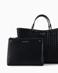 Medium shopper bag in interwoven leather, with magnet closure. Item embellished with logo clips, removable shoulder strap and internal zipped pouch. This item belongs to the MyEA line, the selection of iconic and exclusive Emporio Armani bags that are most representative of the label. Choose the piece and complete it with accessories from the line that suits your style. Measurements: 37.5 x 27 x 11.5 cm Interwoven leather Solid coloured Two handles Logo clips Logo patch Detachable shoulder strap Internal zipped pouch Product Code: EW000360AF12762UC001