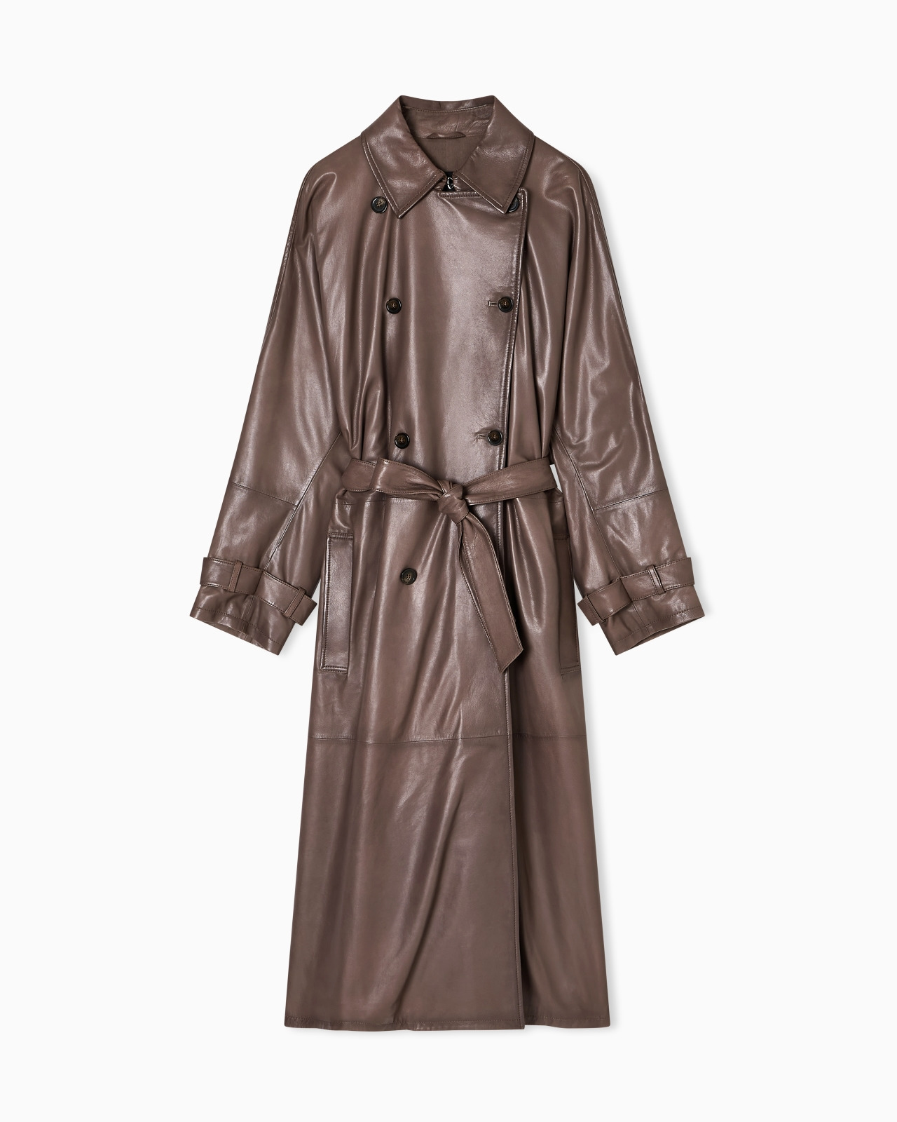 NAPPA-LAMBSKIN, DOUBLE-BREASTED TRENCH COAT WITH BELT