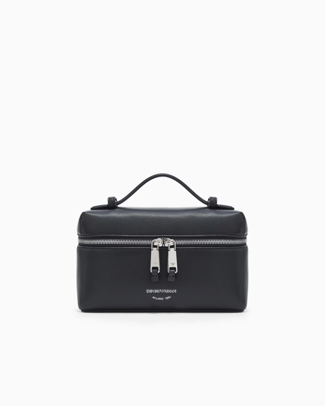 Vanity case style shoulder bag made of soft nappa leather. This family of mini bags is known for its compact and refined shapes and is the ideal choice for those who want a small yet distinctive accessory. Measurements: 23 x 6 x 13 cm Nappa leather Top handle Shoulder strap Zip closure Silkscreen logo Inner pocket with compartment Product Code: EW004564AF19229UC001
