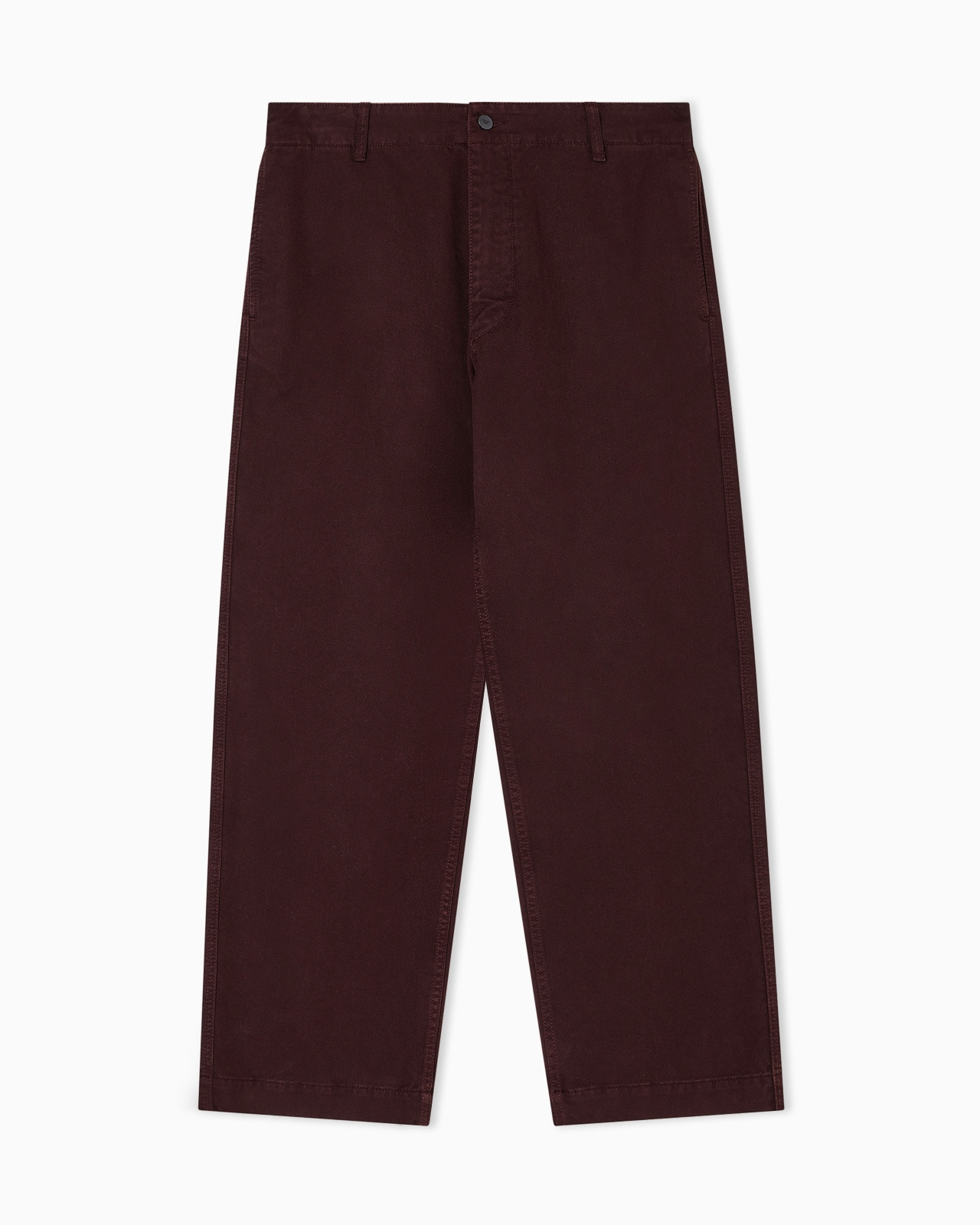 Wide-leg trousers in cotton drill, a carded diagonal-weave fabric with a structured feel similar to denim but piece-dyed not yarn-dyed. Imagine walking the hectic streets of New York, where every corner tells a story, every street has its own pace. The New York AW25 collection is inspired by this unique energy, intertwining the dynamism of the metropolis with comfort and modern street style. Drill Waist with belt loops Zip and button closure Side pockets Back patch pockets Back logo patch Product Code: EM001229AF19310U6032