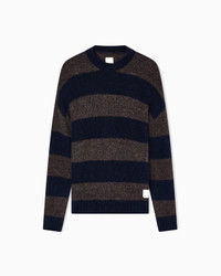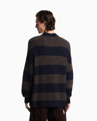 Oversized crew-neck jumper in a blend of virgin wool, alpaca and recycled fibres in a smooth plain knit featuring a contrasting horizontal striped motif. Imagine walking the hectic streets of New York, where every corner tells a story, every street has its own pace. The New York AW25 collection is inspired by this unique energy, intertwining the dynamism of the metropolis with comfort and modern street style. Fabric: 47% recycled polyamide, 25% wool from responsible farming Oversized fit Solid plain knit Striped design Crew neck Long sleeves Ribbed trim Logo patch at the hem on the left Product Code: EM002495AF16996MB042