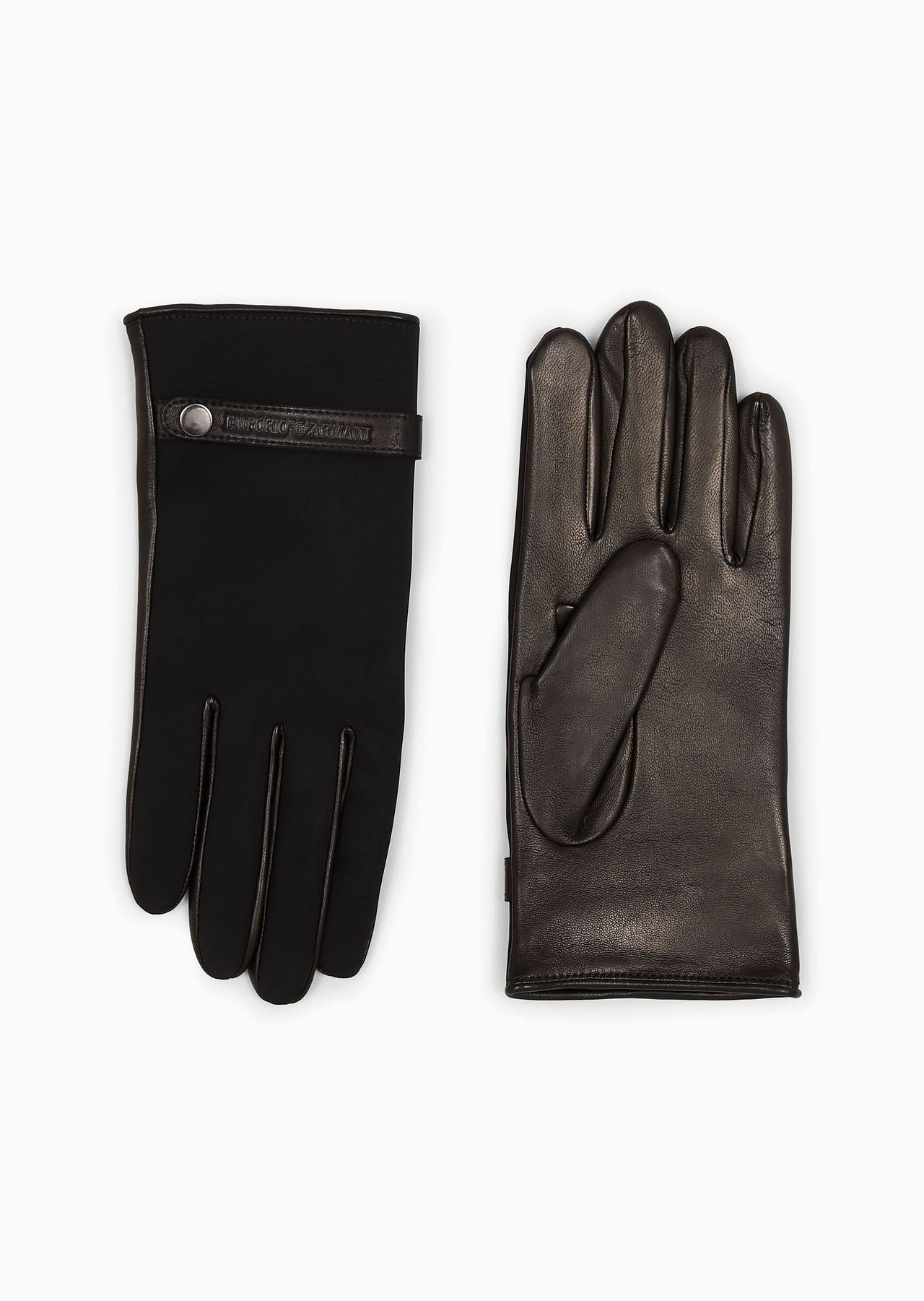 Made from two different materials, nylon backs and nappa-leather palms, these gloves offer double style. A leather logo strap adds a distinctive touch. Wear this stylish accessory to protect yourself from the season’s first chills. Product Code: 6245241A251100020 Details Composition 80% Polyamide 20% Elastane Nylon back Nappa lambskin Logo strap Made in Italy