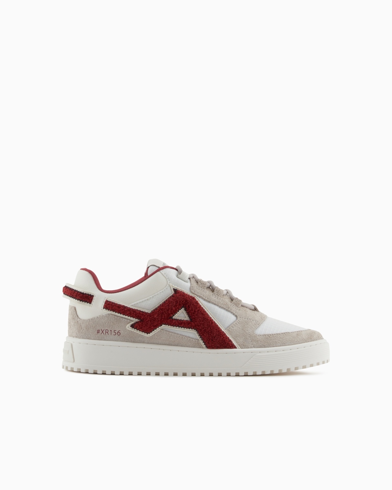 NYLON AND SUEDE SNEAKERS WITH A CONTRASTING OVERSIZED LOGO