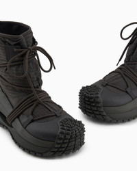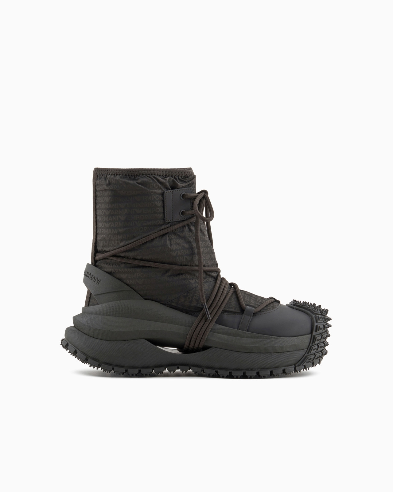 Ankle boots with nylon upper featuring all-over logo lettering and scuba fabric. Shoes featuring special technical laces fastened by a drawstring. Inspired by a futuristic and aerodynamic world in which the “shapeless” design of the sole combines with the technical nature and practicality of the upper. The shoe is completed by an EVA and TPU midsole and rubber tread. Nylon uppers All-over logo lettering Rounded toe Drawstring fastening Rubber soles Product Code: X4Z133XR192U223