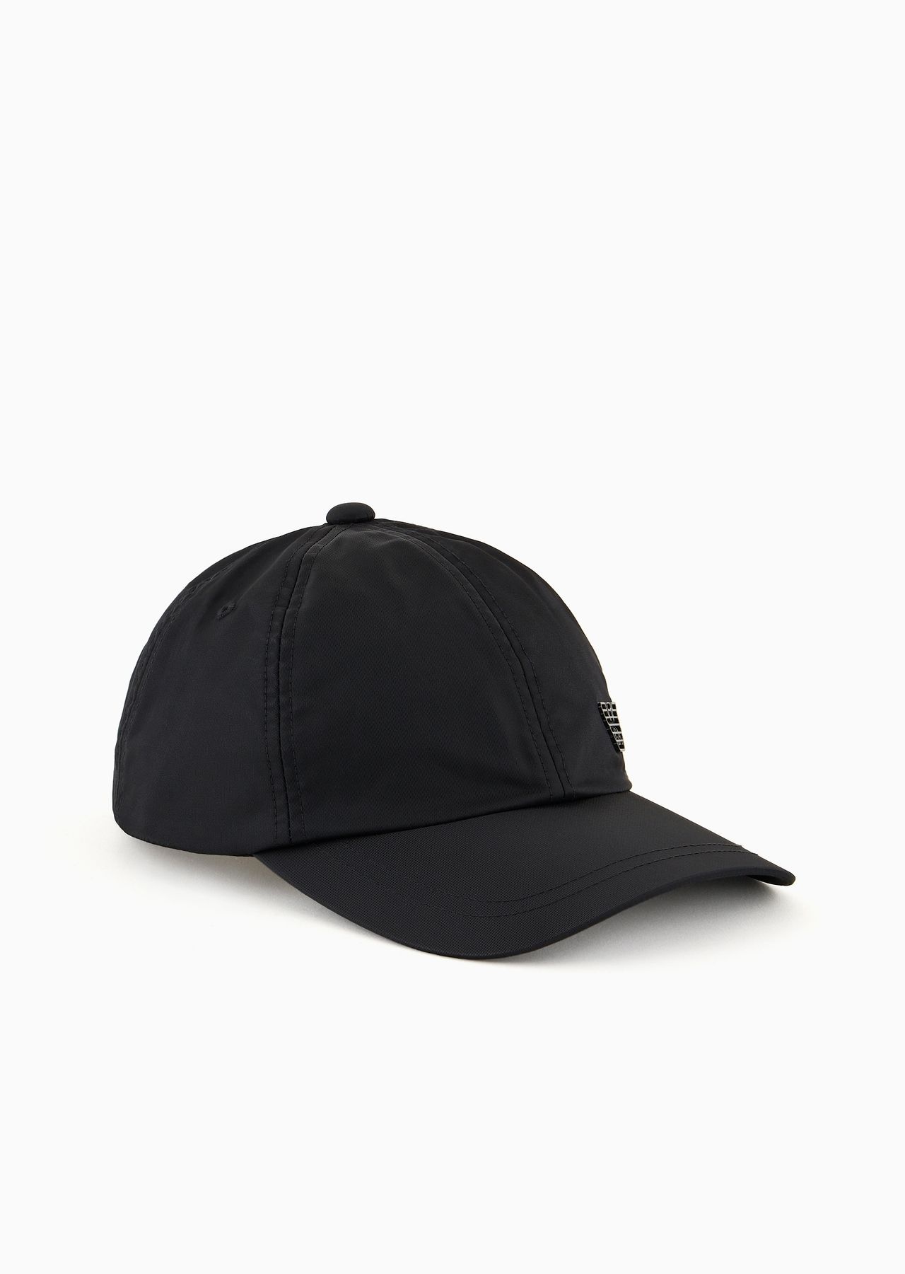 Nylon baseball cap with metal plate moulded into the shape of the iconic eagle. Having recently roared back into style, the baseball cap is the ultimate, iconic sportswear accessory. It completes a wide array of outfits with a playful touch. Product Code: 6273933F563100020 Details Composition 100% Polyamide Nylon Rigid visor Eagle plate Adjustable back