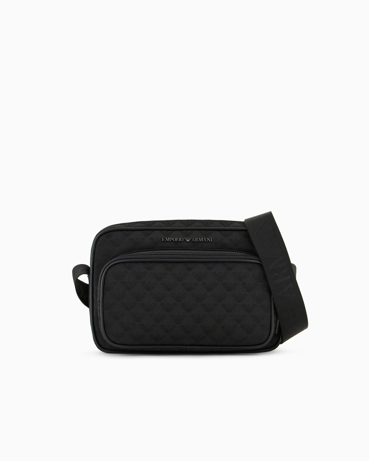 Shoulder bag with external pocket. The exclusive jacquard depicting the all-over iconic eagle creates a distinctive, recognisable texture. A series of accessories that are both classic and modern, enhanced by the front applied Emporio Armani lettering and satin finish. This accessory belongs to the Essentials selection, the Emporio Armani capsule collection that is an evergreen statement of style: an ongoing collection with clean, well-designed shapes for a wardrobe that meets the demands of any season. Product Code: Y4M403Y022V181336 Details Composition 52% Polyester 48% Cotton Measurements: 26 x 17 x 5 cm Jacquard nylon All-over eagle Metal logo Adjustable shoulder strap Zip closure Zipped outer pocket This bag is suitable for carrying: phone, wallet, keys