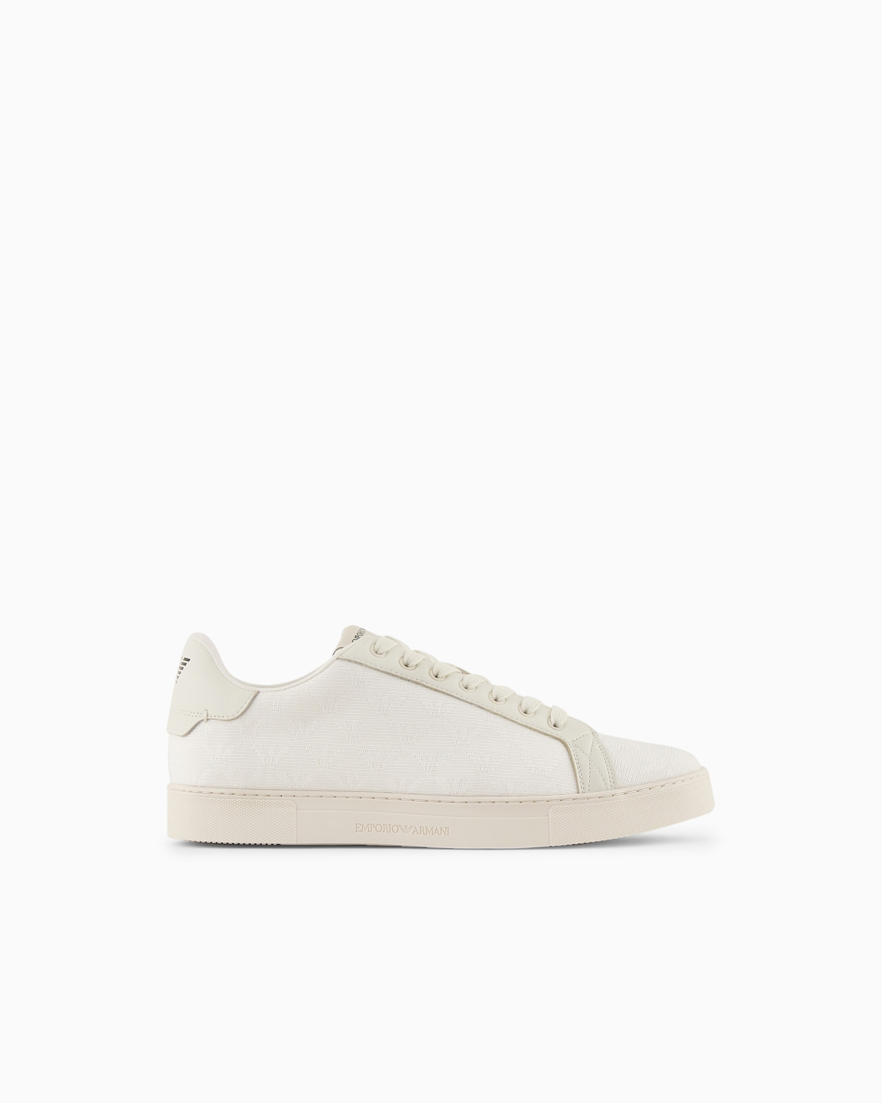 These minimalist, modern sneakers are perfect for everyday city wear. This item features a tone-on-tone, all-over iconic eagle, along with leather details and back. Jacquard nylon sneakers with matching enamelled eyelets on the uppers. Made in Italy. Product Code: X4X316XM7411M801 Details Composition 57% Cotton 43% Polyester Logo design Laces Round toeline Fully lined Rubber sole