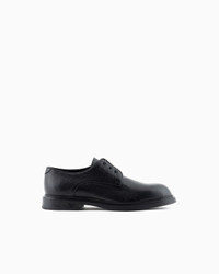 Leather Derby shoes with a grained finish. A collection of high-quality Made-in-Italy formal footwear featuring a logo on the outer sole: ideal for completing outfits with practical elegance, a truly versatile style dedicated to the modern businessman. Product Code: X4C653XF583100002 Details Composition 100% Calf-skin leather Pebbled leather Rounded toe Lace-up fastening Rubber soles Made in Italy