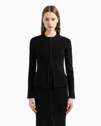 Crew-neck zip jacket made of perforated, smooth ottoman fabric. This jacket proves itself, thanks to its versatility, as a key wardrobe piece that can be worn both as outerwear or as a cardigan for everyday wear. The ottoman fabric creates refined raised ribs all over, making it unique and adaptable for multiple outfits. Ottoman fabric Crew neck Zip closure Long sleeves Product Code: EW000465AF15109UC001