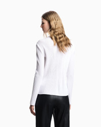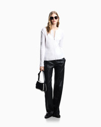 Crew-neck zip jacket made of perforated, smooth ottoman fabric. This jacket proves itself, thanks to its versatility, as a key wardrobe piece that can be worn both as outerwear or as a cardigan for everyday wear. The ottoman fabric creates refined raised ribs all over, making it unique and adaptable for multiple outfits. Ottoman fabric Crew neck Zip closure Long sleeves Product Code: EW000465AF15109U0006