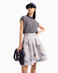 Round-neck jumper with short cap sleeves and stretch hem, made from a perforated viscose blend. The fabric features a unique striped, perforated weave that bestows refinement and texture to the style. Perforated viscose blend Rounded neckline Short cap sleeves Finished edges Product Code: EW001665AF15884FB012