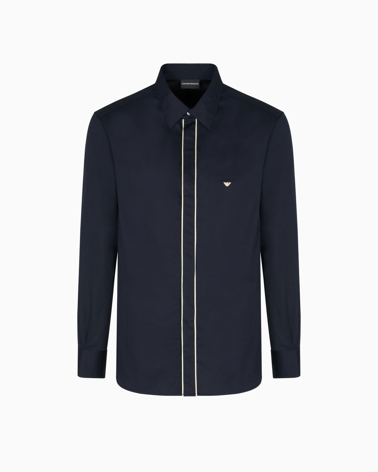 This shirt with a classic collar is made of pure Pima cotton: the most sought-after cotton in the world thanks to its softness and sheen, which makes it durable, comfortable and breathable. The front placket features contrasting piping, in line with the iconic embroidered micro eagle on the chest. Pima cotton Classic collar Front buttoning Piping on the placket Micro eagle embroidery Long sleeves Buttoned angled cuffs Back yoke Product Code: EM003186AF18181UB118