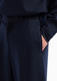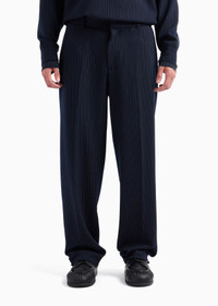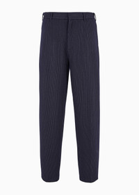 Classic, versatile trousers embellished with a sophisticated all-over vertical pinstripe pattern. Made from a soft, viscose-blend jersey fabric with a statement, striped motif. Product Code: 6D1PN71JPPZ10920 Details Composition 68% Polyester 28% Viscose 4% Elastane Jersey Pinstriped motif Waist with belt loops Zip, hook and button closure Side pockets Buttoned double-welt pockets Fitting The model is 188 cm tall and is wearing size 48/M (Italian Size)