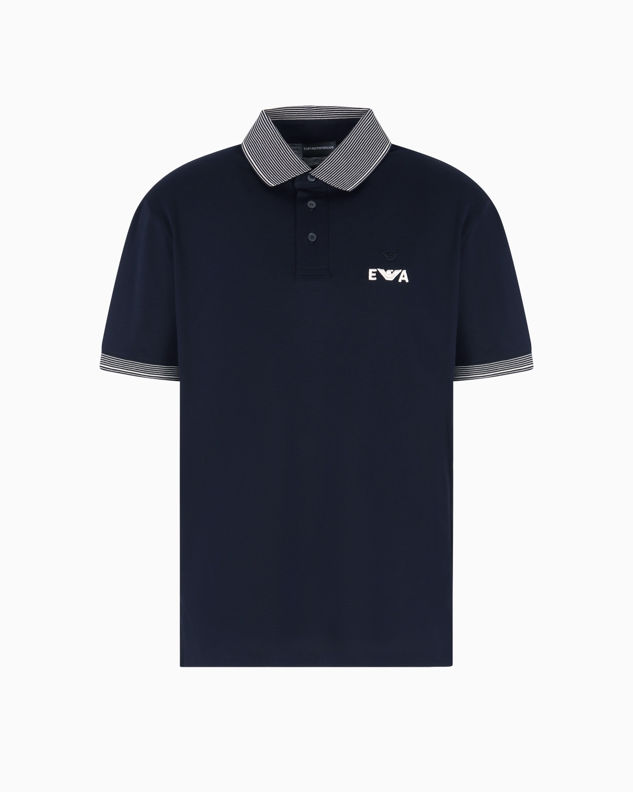 Cotton pique polo shirt with contrasting trim. The contrasting super-embossed, embroidered EA logo completes and distinguishes the garment. Pique Polo-shirt collar Partial closure with buttons Logo embroidery Short sleeves Product Code: EM002992AF12955UB118